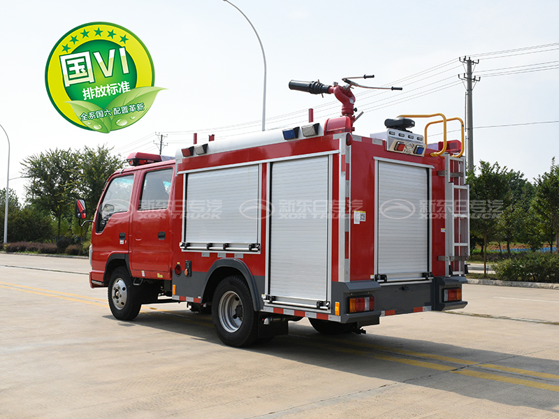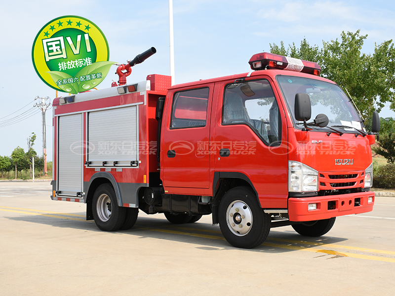 五十鈴 100P 水罐消防車是由二類汽車底盤、水罐、水泵、管路、儀表電路系統等部件組成,該車裝配鋁合金后爬梯(可拆卸),泵房在整車尾部,罐體為鋼板焊接式,罐體材質為優質碳鋼板,罐體內部做防腐處理,載水 1.0 方。該車裝備 CB10/30 消防泵, PS8/20 消防炮。